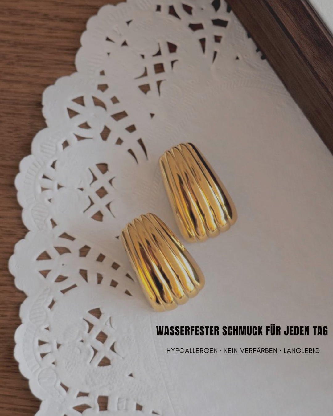 Sanft gebettet in braunen Schmuckboxen, eingehüllt in Seidenpapier und mit einem zarten Satinband veredelt, wartet dein Schmuck darauf, ausgepackt zu werden.